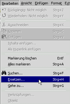 (1) Technisch geschieht dies sehr einfach und schnell mit der Funktion "Ersetzen" im Menü "Bearbeiten".