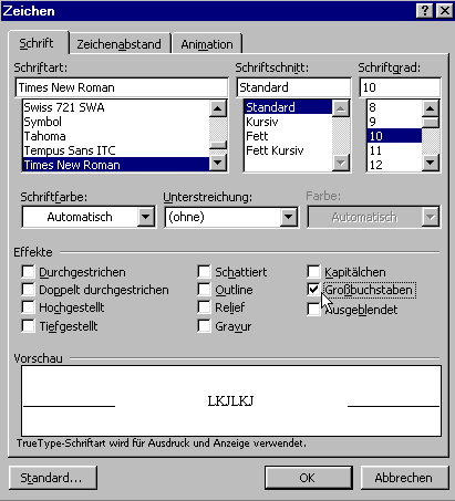 erscheinenden Fenster auf die Option "Großbuchstaben" und bestätigen